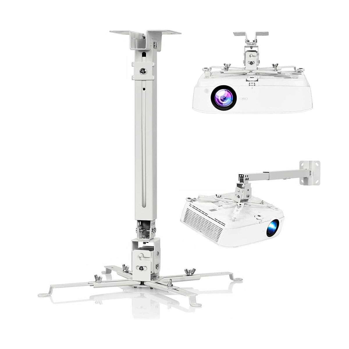 Maximiza la experiencia visual en salas de reuniones, aulas o cine en casa con el soporte universal para proyector Q-Max. Fabricado en acero resistente con acabado en color blanco, este soporte ofrece versatilidad de instalación en techo o pared, y se adapta a una amplia variedad de modelos de proyectores gracias a su sistema de brazos ajustables.
